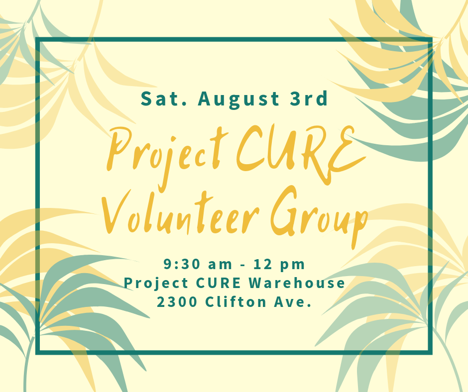 Project CURE Volunteer Group is scheduled for Sat. Aug. 3rd from 9:30 am – 12 pm (2300 Clifton Ave, 37209). We will be sorting medical supplies to be sent to hospitals in developing countries. Everyone is welcome, including newcomers! See you there!