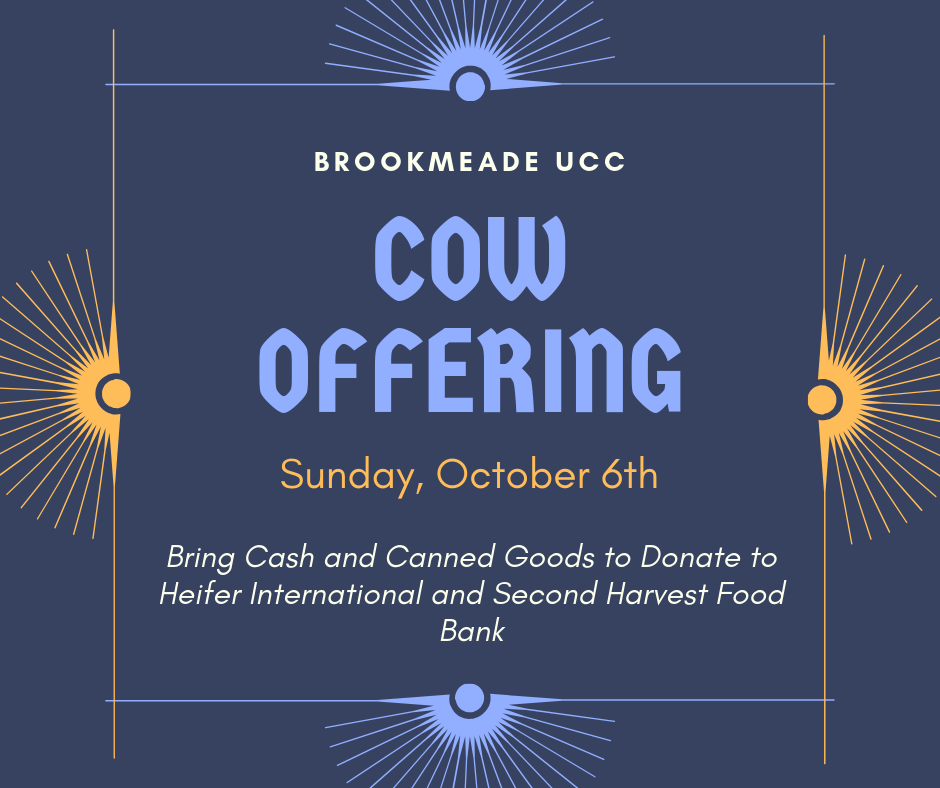 Sunday, October 6th: COW Offering Posted bybrookmeadeofficeSeptember 25, 2019Posted inUncategorized Every first Sunday of the month we have our “Contribute Our Wealth” Offering! Share this: Click to print (Opens in new window) Print Click to email a link to a friend (Opens in new window) Email Click to share on Facebook (Opens in new window) Facebook Click to share on X (Opens in new window) X Like Loading... Related
