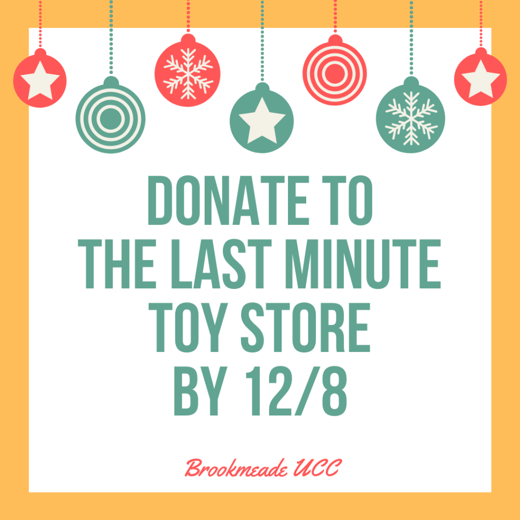 New, unwrapped toys (no clothing or footwear) and other age-appropriate gifts in the $10 – $25 price range are needed for ages newborn to eighteen. Gifts for all ages are helpful, but in the past we have had a special need for items for teenagers and toddlers. For teens, It is sometimes hard to find gift items in the $10-$25 price range. We really hope you will consider donating gift cards in the amount of $10-$25 to stores such as: Walmart, Amazon, Old Navy, Rue 21, Dollar General etc. (iTunes NO Longer recommended!) If you would prefer to buy specific items, here are some ideas: Jewelry, make-up kits, purses/wallets, watches, bean bag chairs, ear buds, ear phones, skateboards, etc. Please steer away from clothing, shoes, and small accessories for the teens. Those are seldom chosen as gifts. Brookmeade will have a box in the foyer. Bring your unwrapped toys. Deadline is December 8th.