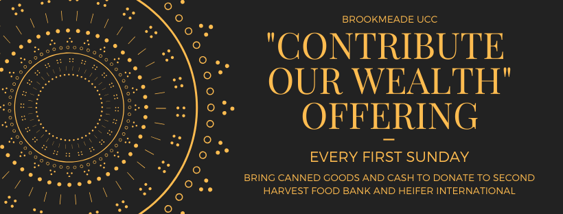 The first Sunday of every month is COW Sunday (Contribute Our Wealth). Everyone is encouraged to bring non-perishable food for Second Harvest. All money donations are split between Second Harvest and Heifer International. Brookmeade doing its part to alleviate hunger!