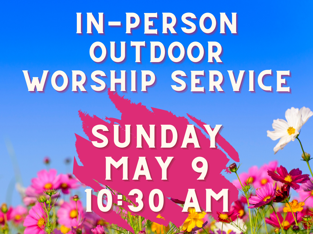 After the success of the Outdoor Easter service, we have decided to hold another In-person Ourdoor Worship Service on Sunday, May 9th (Mother’s Day) at 10:30 am! We will continue to require masks and social distancing and we encourage folks to bring hats, lawn/camp chairs for your safety and comfort. We will have hand sanitizer and extra masks available for visitors and are taking precautions as we prepare for the service. Thank you and we look forward to seeing you all on May 9th! Let us know if you have any questions or requests.
