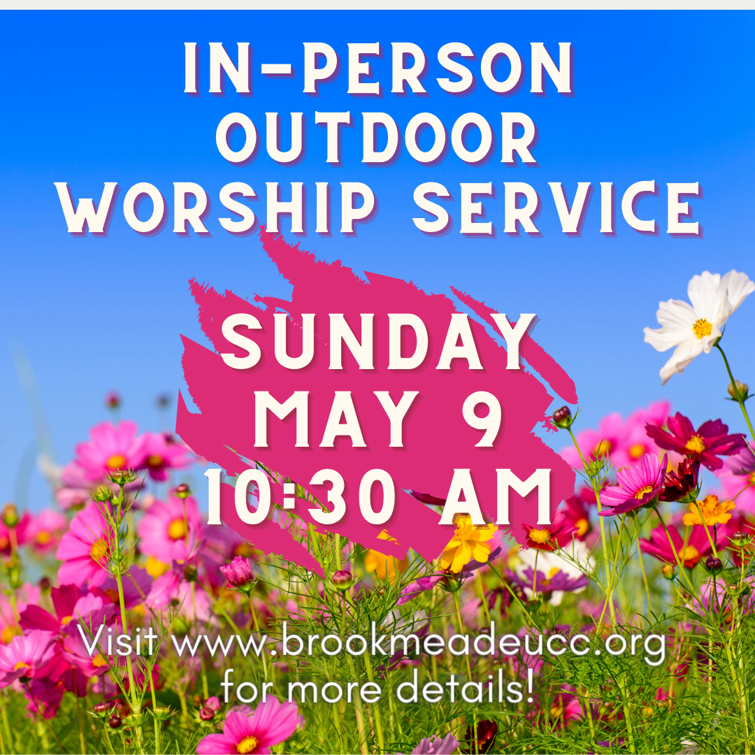 Livestream: For those unable to attend in person, please watch the livestream on our Facebook page. You do not need a Facebook account to watch the livestream, just visit: https://www.facebook.com/brookmeadeucc and scroll down to see the livestream. Follow along with our online worship bulletin HERE: https://drive.google.com/file/d/1XBEB6qvo-BGjuoVqum_C-_fI1iOn4nj7/view?usp=sharing