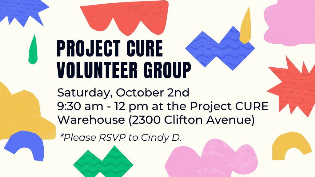 Our next trip to the Project CURE Warehouse (2300 Clifton Ave.) is scheduled for Saturday, October 2nd, 9:30 am – 12 pm. We will be sorting medical supplies. Newcomers are very welcome but please wear a mask! For planning reasons and to make sure we are COVID safe we need a head count for our group prior to volunteering. Please RSVP to Cindy D. or the church office ASAP if you plan to attend (brookmeade@comcast.net). Thanks and see you there!