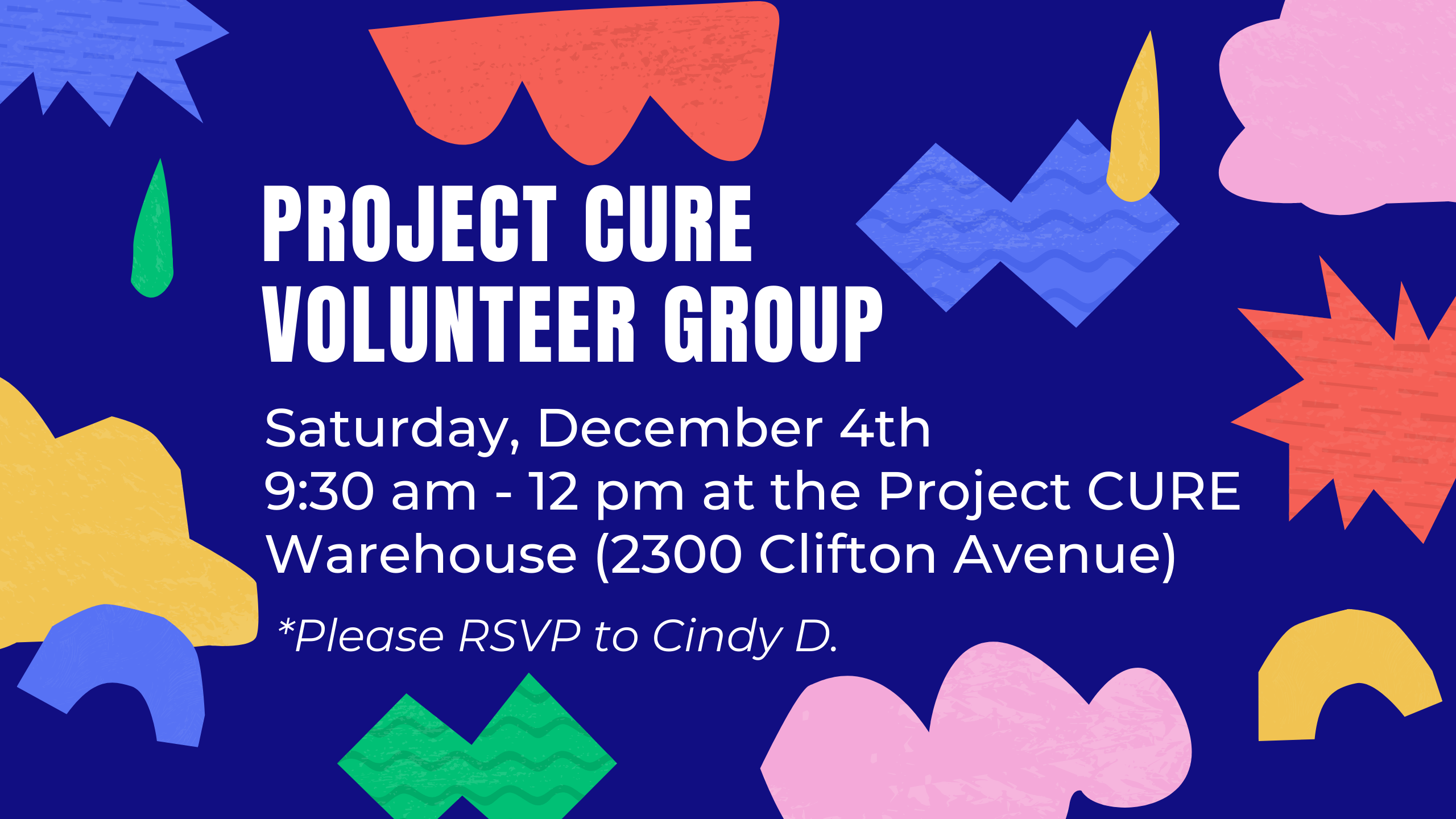 Our next trip to the Project CURE Warehouse (2300 Clifton Ave.) is scheduled for Saturday, December 4th, 9:30 am – 12 pm. We will be sorting medical supplies. Newcomers are very welcome but please wear a mask! For planning reasons and to make sure we are COVID safe we need a head count for our group prior to volunteering. Please RSVP to Cindy D. ASAP if you plan to attend (or to the church office). Thanks and see you there!