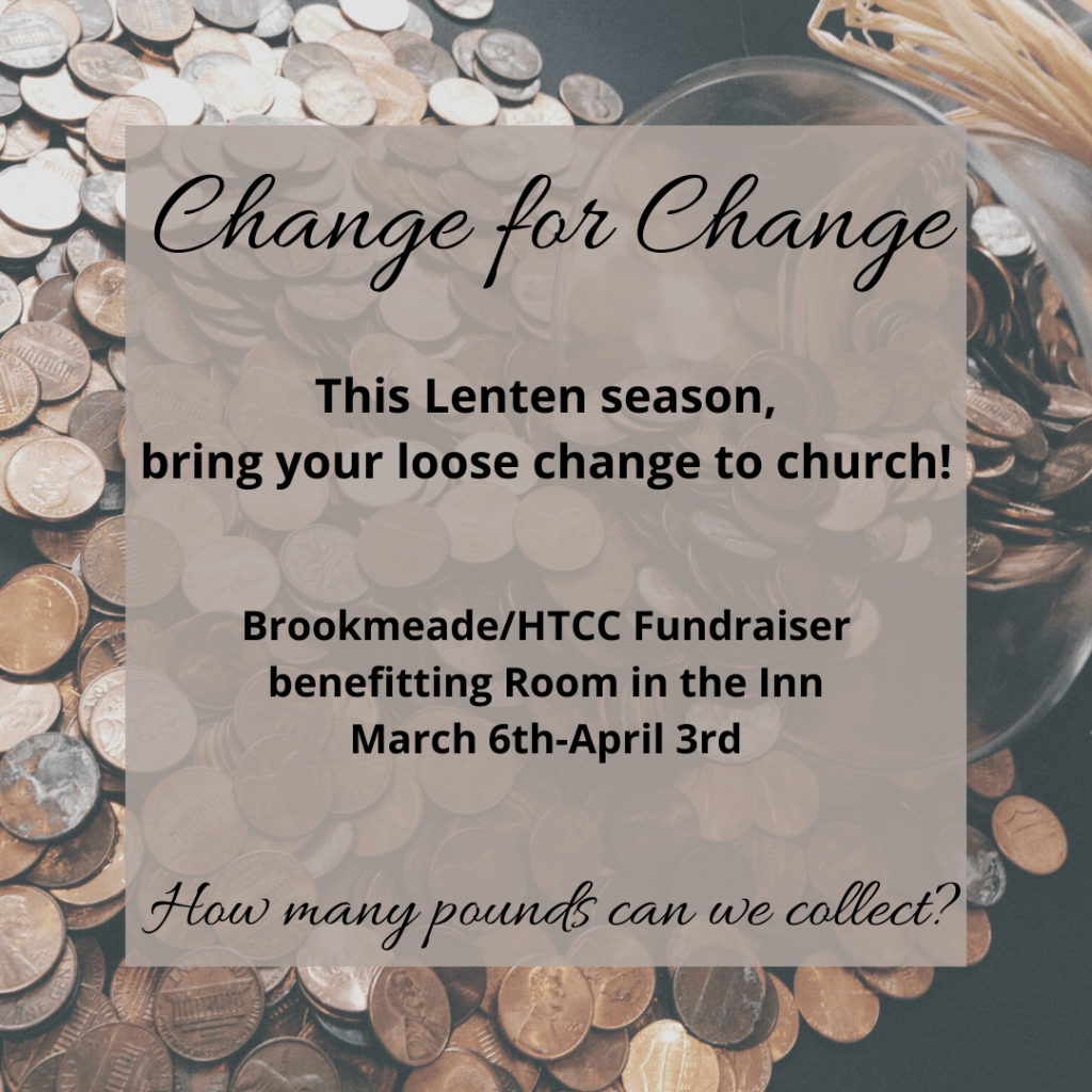 This Lenten season from Sunday March 6th through Sunday April 3rd, we are asking you to bring your loose change to church! Our Change for Change fundraiser will be done in collaboration with Holy Trinity Community Church. Which church do you think can collect the most pounds of coins over the month of Lent? This fundraiser will benefit Room in the Inn, a nonprofit organization that serves individuals experiencing homelessness in the Nashville area. So start turning over your couch cushions, filling your change jars, and checking your pockets so that your change can be a part of bringing change!