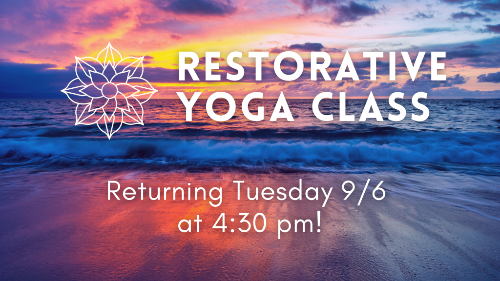 We have a new day and time for our Restorative Yoga class. It will start on the Tuesday after Labor Day 9/6, and it will be on Tuesdays at 4:30 pm. Our wonderful teacher, Ali Sperry continues to lead us via Zoom. This is a beginning restorative class with simple positions, breathing and basic healing. Join us and call the church office if you have any questions. All are welcome!