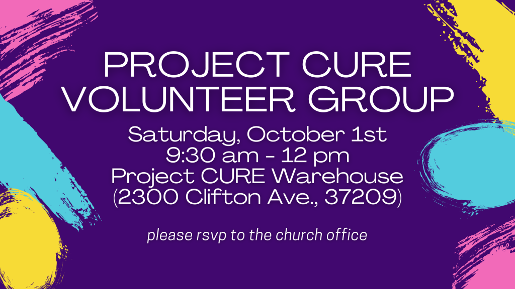 Our next trip to the Project CURE Warehouse (2300 Clifton Ave.) is scheduled for Saturday, October 1st, 9:30 am – 12 pm. We will be sorting medical supplies. Newcomers are very welcome! For planning reasons and to make sure we are COVID safe we need a head count for our group prior to volunteering. Please RSVP to the church office if you plan to attend. Thanks and see you there!