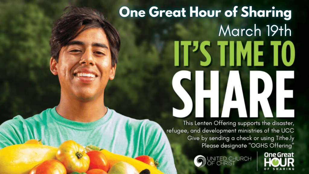 Every year UCC congregations band together in One Great Hour of Sharing (OGHS), one of four special mission offerings of the United Church of Christ. This Lenten Offering supports the disaster (think Turkey and Syria), refugee (think Ukraine), and development (needed on every continent but Antarctica) ministries of the United Church of Christ within Wider Church Ministries. Brookmeade will be collecting for OGHS through Sunday, March 19th. You can write a check (memo: OGHS) or donate via Tithely (choose OGHS UCC Offering on drop-down menu). Please give generously as you are able! To learn more about the OGHS offering and the impact your donation can make, watch the video: