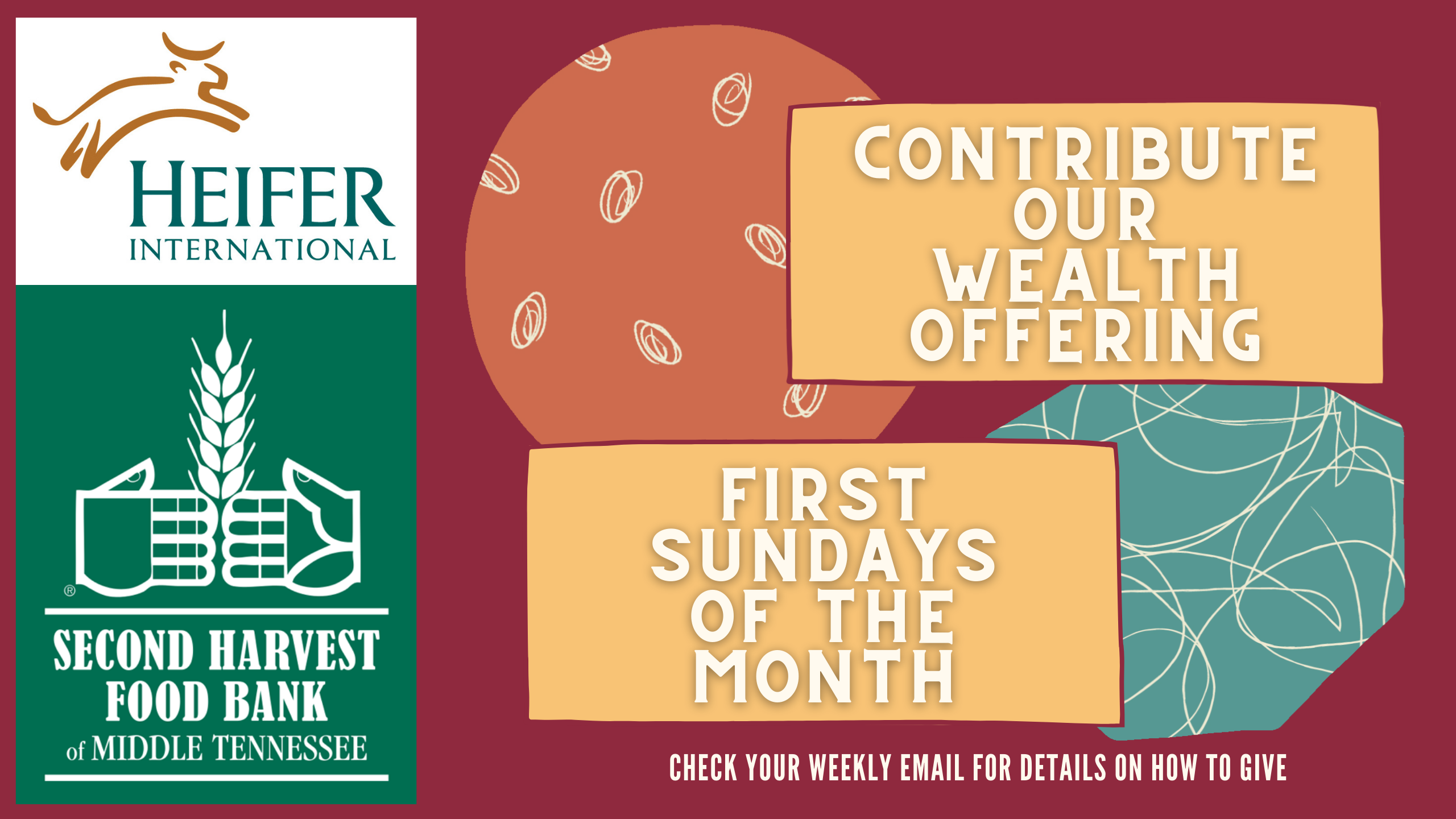 First Sundays of the month we collect our COW Offering. Monetary donations are split between Second Harvest of Middle TN and Heifer International. You can also bring canned goods on Sunday morning to donate to Second Harvest. Please designate your check for COW Offering or if you give online you can choose COW offering on the drop-down menu on Tithe.ly. Thank you for supporting these important organizations and helping Brookmeade fight hunger!
