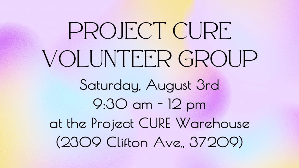 Our next trip to the Project CURE Warehouse (2309 Clifton Ave, 37209) is scheduled for Saturday, Aug. 3rd from 9:30 am – 12 pm. We will be sorting medical supplies. Newcomers are very welcome! For planning reasons we need a head count for our group prior to volunteering. Please RSVP to the church office ASAP if you plan to attend. Thanks and see you there!
