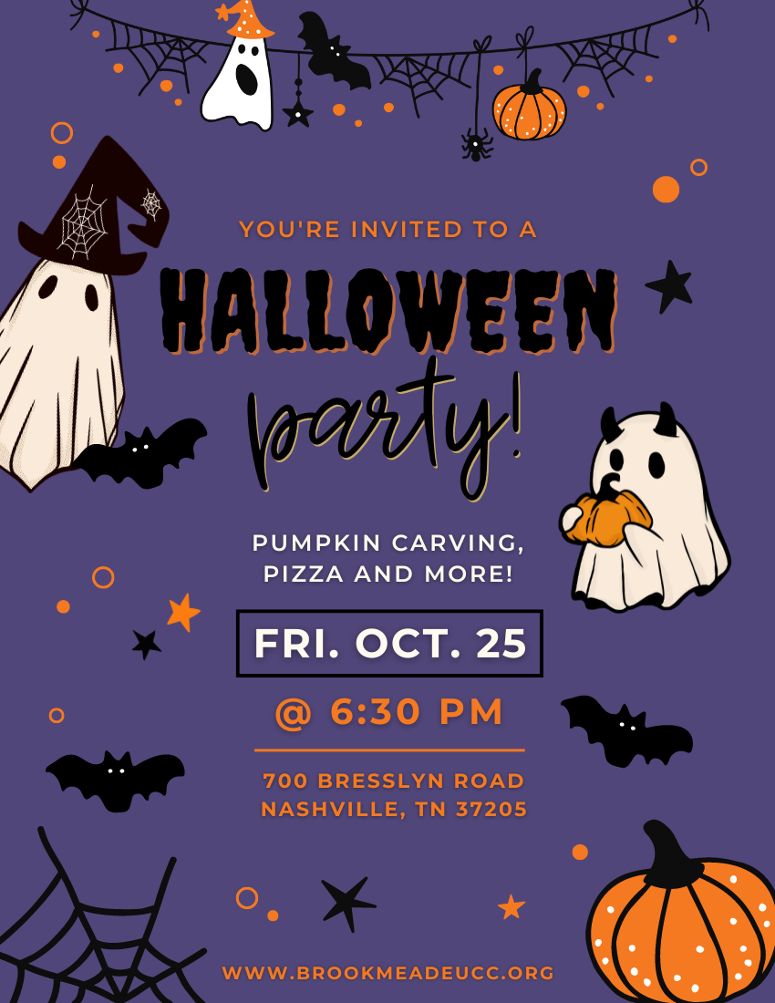 SAVE THE DATE! A festive evening of fellowship & fun is planned for the Friday before Halloween (10/25 @ 6:30 pm) for Brookmeade families & the wider community. We’ll start with a pizza party, and then pumpkin carving to make Jack-O-Lanterns to take home for Halloween proper on the 31st! Other fun activities are planned! Costumes welcomed!