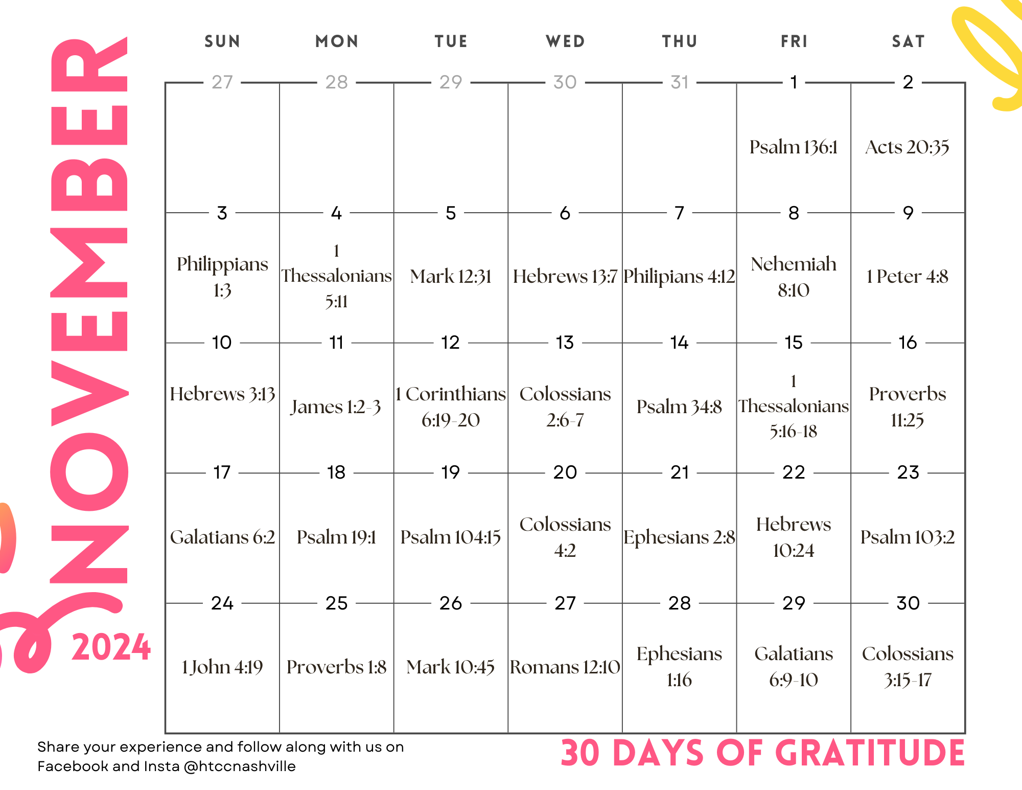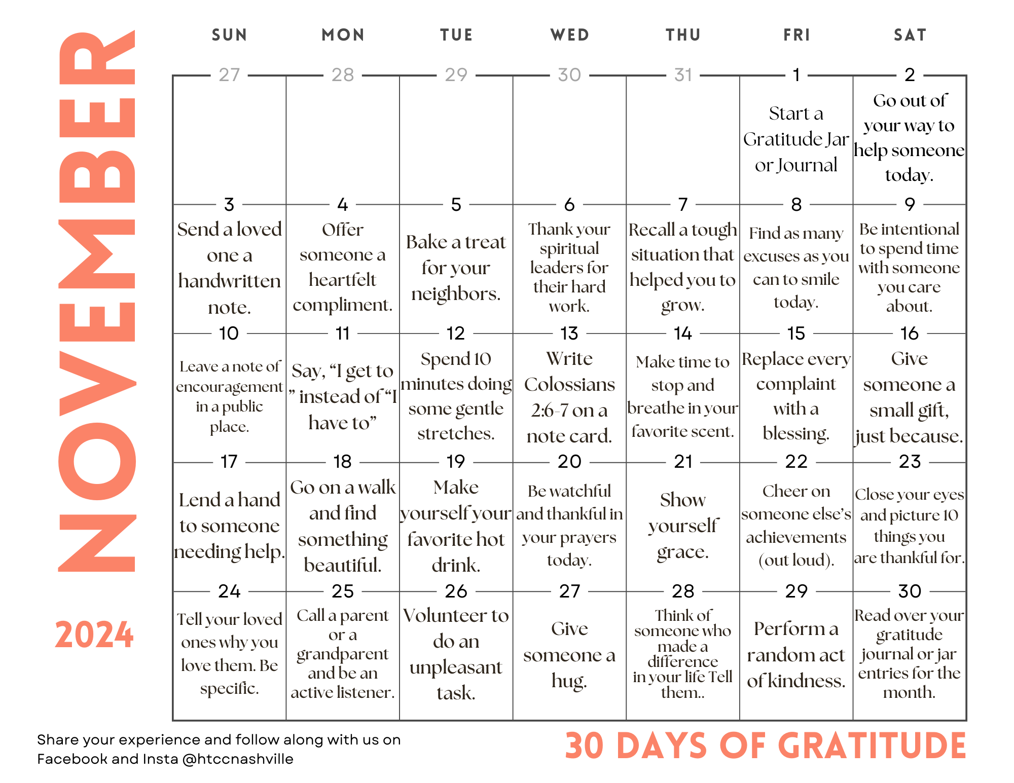 We are excited to participate in “30 Days of Gratitude” alongside HTCC during the month of November!
