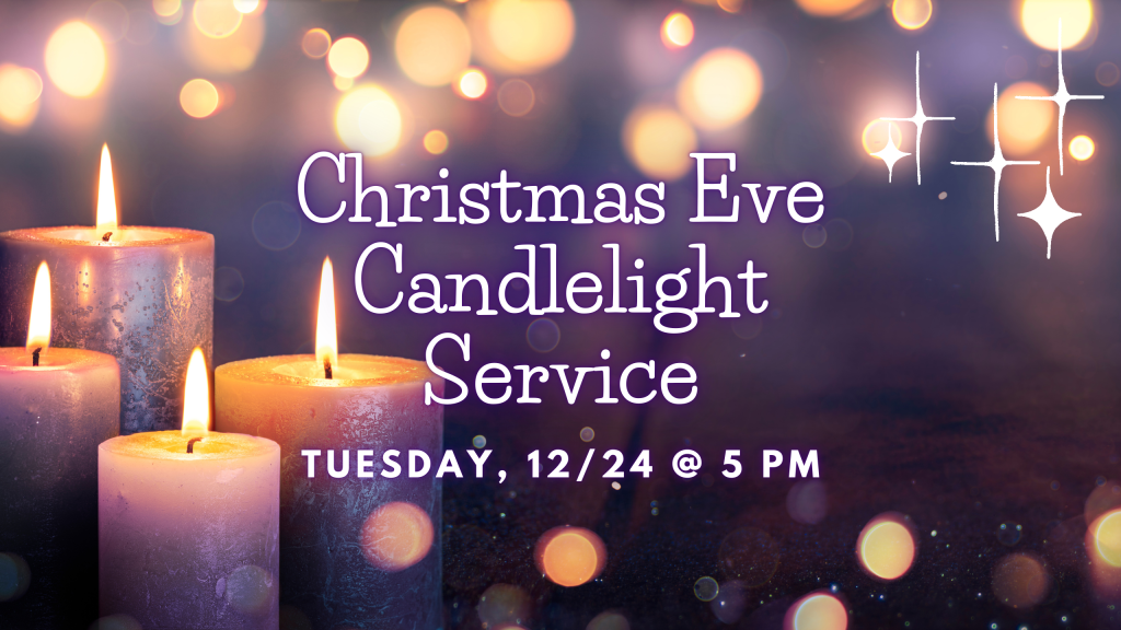 Tues. Dec. 24th: Christmas Eve Candlelight Service Posted bybrookmeadeofficeNovember 24, 2024Posted inUncategorized In Brookmeade tradition, we will hold a candlelight Christmas Eve service on Tuesday, December 24th at 5 pm. All are welcome! Bring your friends, families and neighbors as we celebrate the holiday in a special service of carols and readings. Share this: Click to print (Opens in new window) Print Click to email a link to a friend (Opens in new window) Email Click to share on Facebook (Opens in new window) Facebook Click to share on X (Opens in new window) X Like Loading... Related