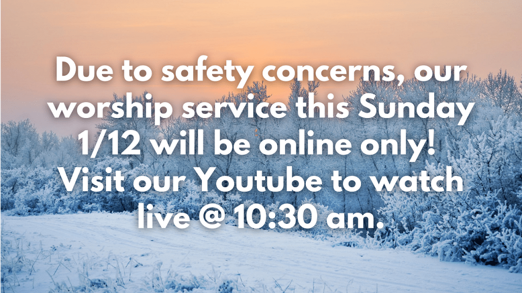 1/12 Worship – Online Only Posted bybrookmeadeofficeJanuary 11, 2025January 12, 2025Posted inUncategorized Worship on Sunday 1/12 will be online only. Click here to watch our service live at 10:30 am: Our Congregational Meeting will be held at 12 pm on Zoom following worship. Thank you! Share this: Click to print (Opens in new window) Print Click to email a link to a friend (Opens in new window) Email Click to share on Facebook (Opens in new window) Facebook Click to share on X (Opens in new window) X Like Loading... Related