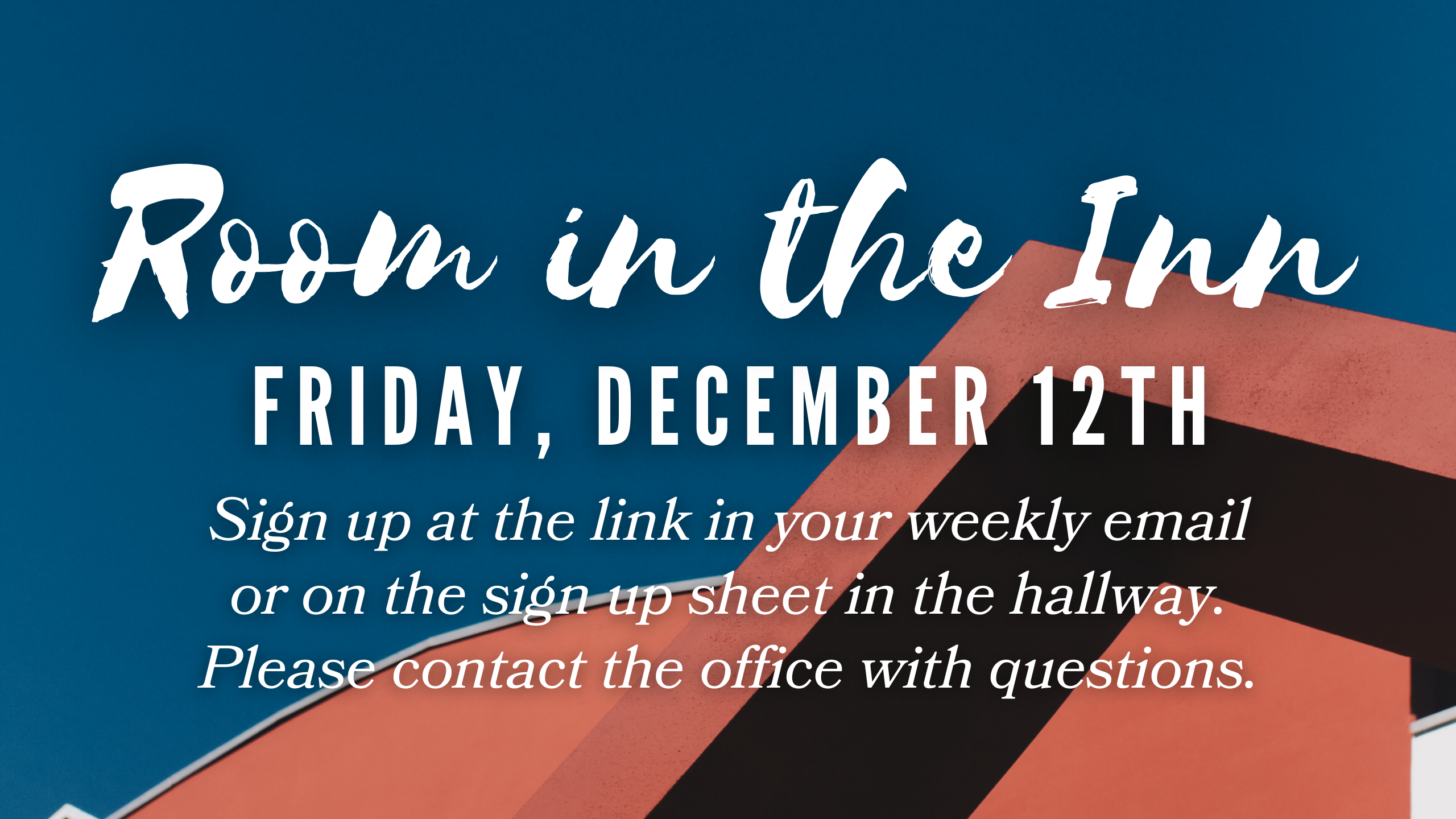 Brookmeade will provide overnight shelter & supper for persons living on the cold streets of Nashville on Friday, Dec. 12th @ 5:30 PM. We need volunteers to make this happen! Brookmeade participants in the RITI ministry in past years have always found it to be a deeply enriching experience. Please help in providing meals & other services via the signup link in your weekly email or the paper signup sheet located in the long hallway of the church. Heartfelt thanks in advance to all who volunteer to help the unsheltered of Nashville living on the streets during the Christmas season. Please contact the church office with any questions!