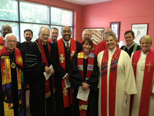 Front (left to right): Rev. Timothy Downs, Rev. Lawrence Clark, Rev. Christophe Ringer, Rev. Jennifer Crane, Rev. Linda White, Rev. Cindy Andrews-Looper. Back (left to right): Rev. Marvin Morgan, Tony England, Rev. Richard Diekmann, Dale Bilbrey, Paul Anway, Bryan Currie.